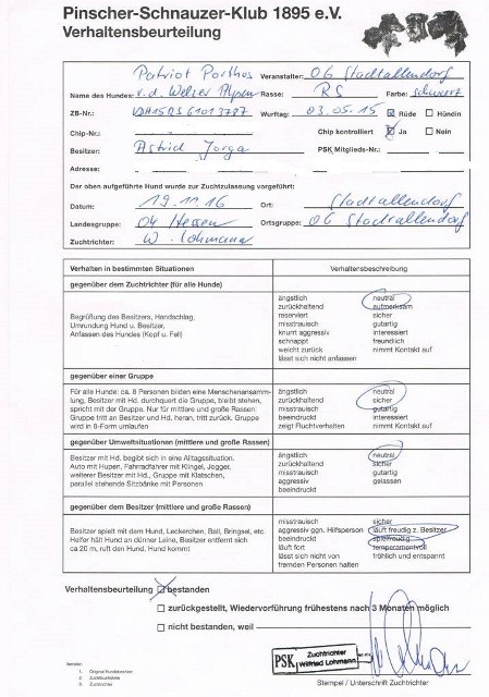 Kbsg, DT + PSK Ch. Lux-Ch, Klub-Ch, ISPU-Kbsg, Frühjahrsveteranensieger 2023 und Vet-BIS, Ger-Vet-Winner 2023, Vet-Kbsg, VDH-Vet-Ch., Herbstveteranen Sieger 2023 + BOB, BH-VT, IPO V, I BgH 3,